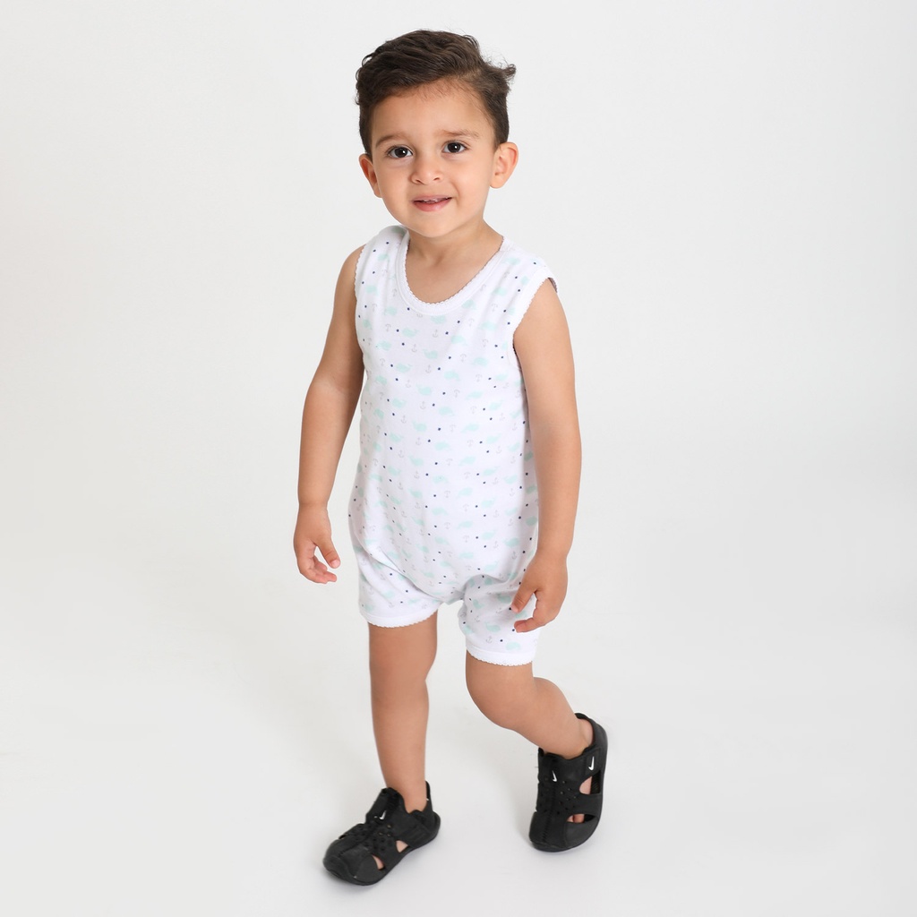 KONTAKT – Barboteuse pour bébé sans manche imprimé BALEINE