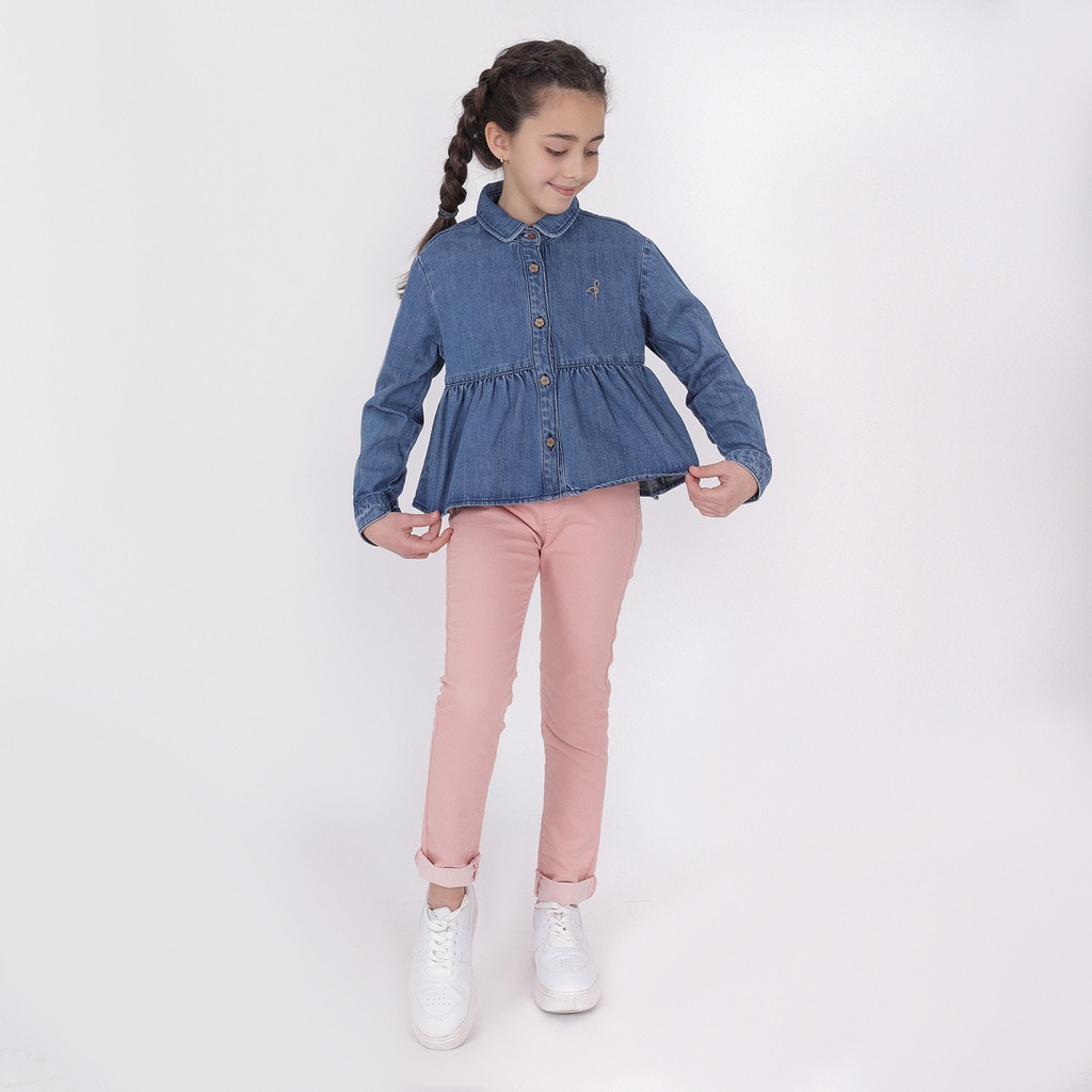 KONTAKT – Chemise pour fille en jeans col claudine – Jeans Bleu Moyen — à partir de 0,999 DT | Hawwini | Hawwini
