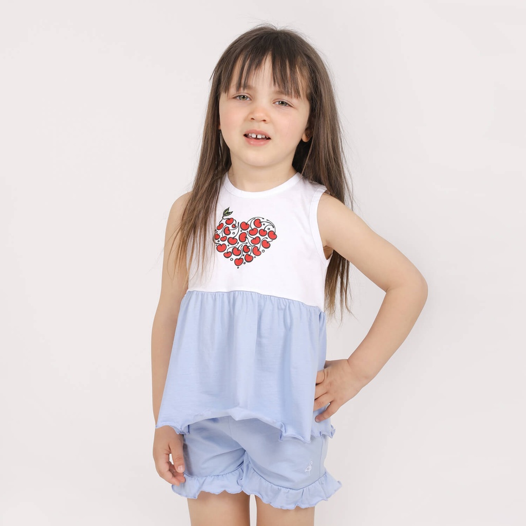 KONTAKT – Débardeur pour bébé avec volant contrasté CŒUR – Blanc & Bleu Ciel — à partir de 0,399 DT | Hawwini | Hawwini