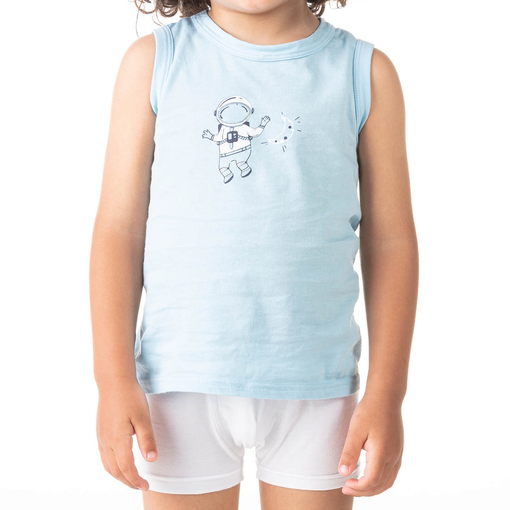 Kontakt Enfant – Débardeur garçon cosmonaute en coton pur – Bleu Ciel