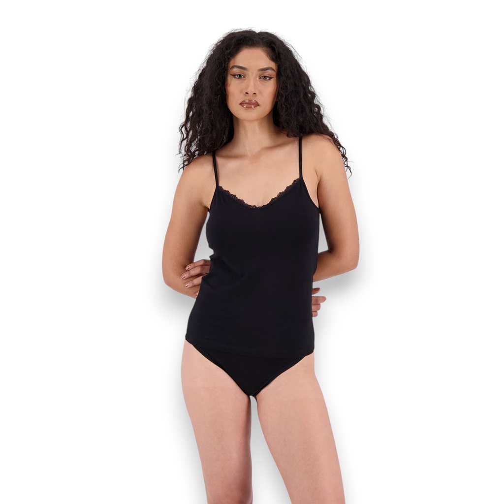 Kontakt – Lot de 2 Caracos femme col v avec dentelle en coton stretch – Noir