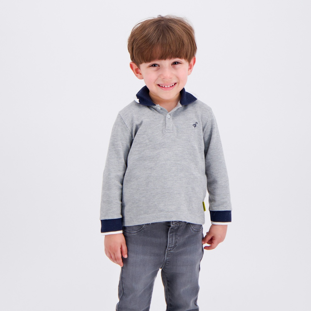 KONTAKT – Polo pour bébé manches longues avec broderie – Gris Chiné