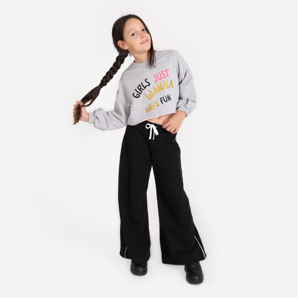 KONTAKT – Sweat crop pour fille GIRLS JUST WANNA HAVE FUN – Gris Chiné — à partir de 0,699 DT | Hawwini | Hawwini