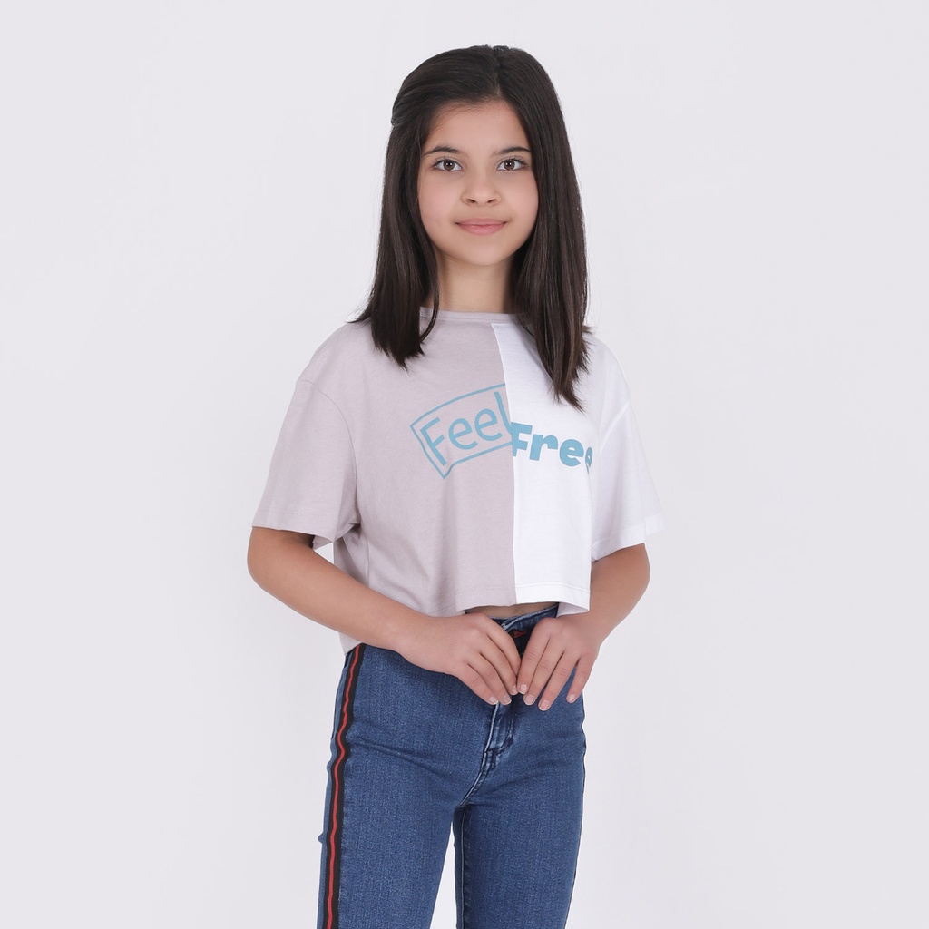 KONTAKT – T-shirt fille crop bi-couleur FEEL FREE – Violet Blanc — à partir de 0,399 DT | Hawwini | Hawwini