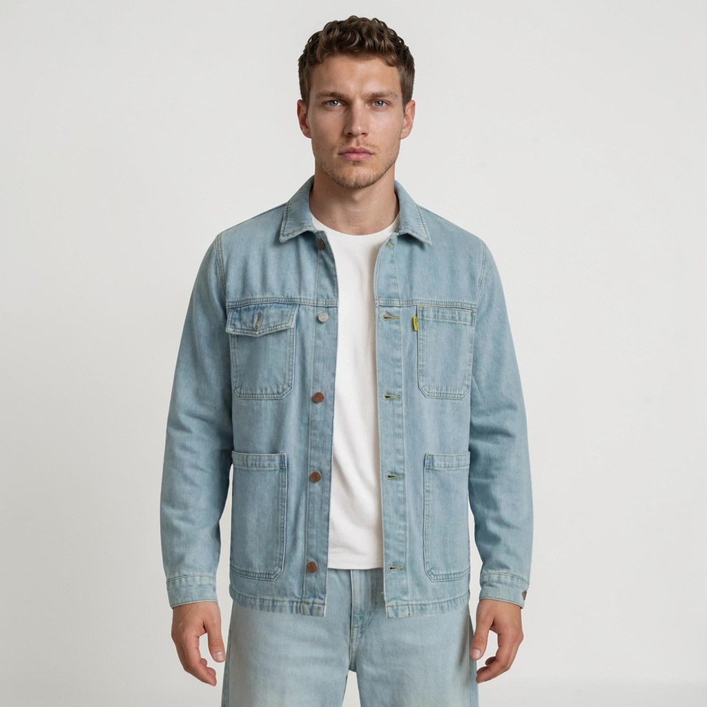 Kontakt – Workwear jacket homme en jeans-WAEL – Bleu Clair — à partir de 1,999 DT | Hawwini | Hawwini