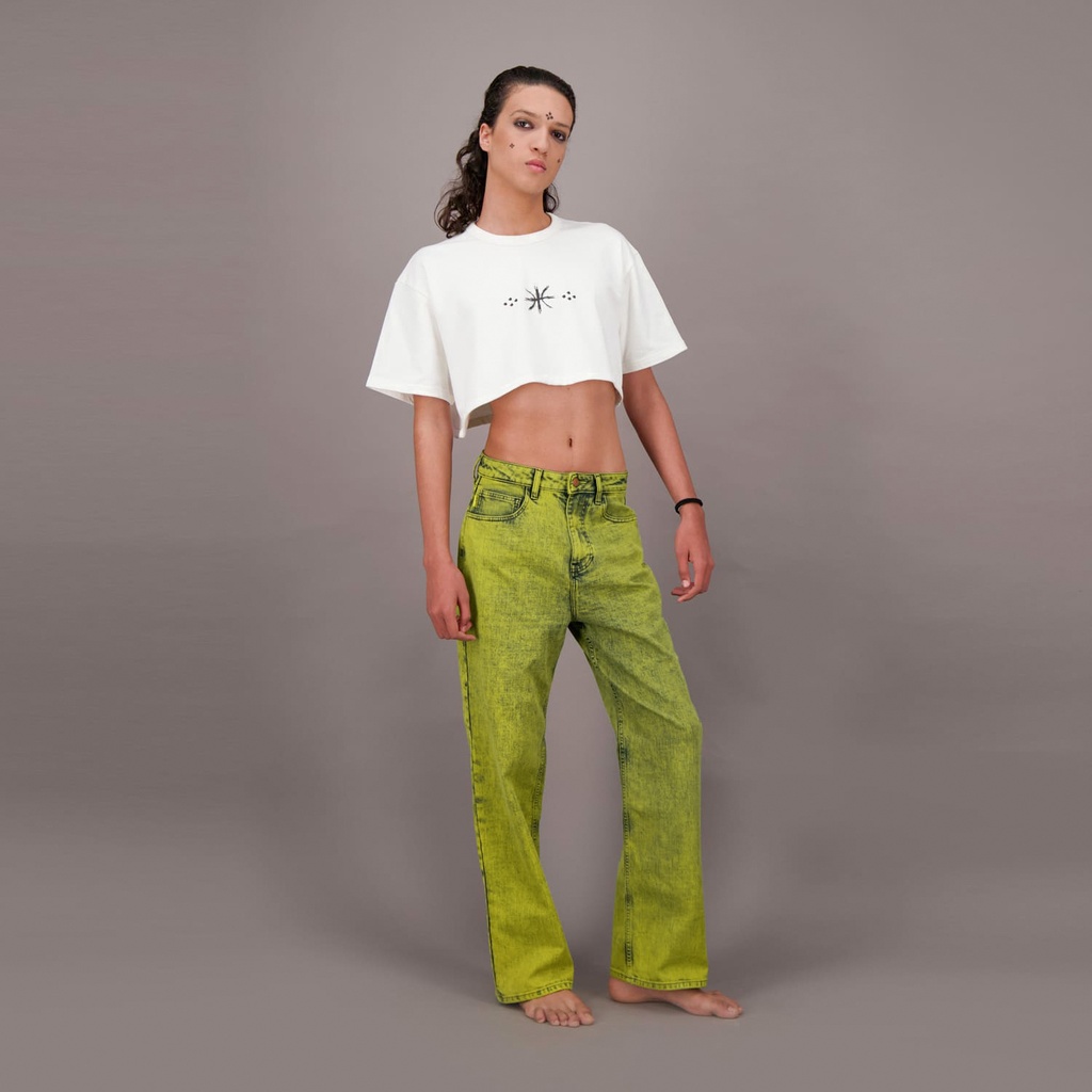 KONTAKTFemme -T-shirt cropped unisexe FREEDOM Selvedge And Raw Look TNFW – Blanc Cassé