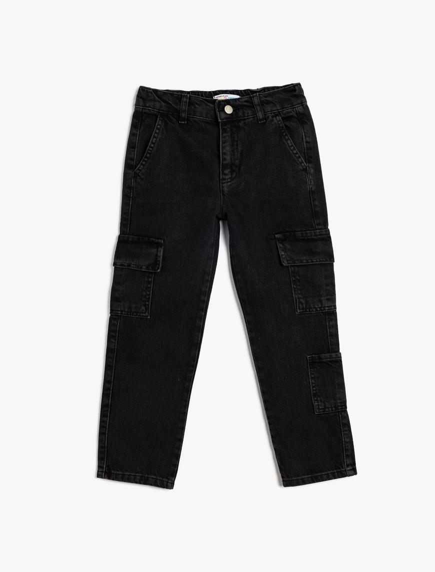 Koton– Pantalon en jean garçon avec poche cargo – Noir — à partir de 0,999 DT | Hawwini | Hawwini