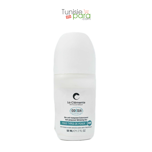Déodorant Éclaircissant Odésia – La Clémente (50 ml) Le Déodorant Éclaircissant Odésia La Clémente est un déodorant roll-on anti-transpirant conçu pour offrir une protection efficace 48h tout en aidant à éclaircir et unifier les aisselles progressivement. Sa formule douce respecte les peaux les plus sensibles et convient à une utilisation quotidienne. Protection longue durée et soin éclaircissant Grâce à sa technologie anti-transpirante, ce déodorant réduit efficacement la transpiration et neutralise les mauvaises odeurs, tout en améliorant l’aspect des aisselles sujettes aux taches et aux irrégularités. Les principaux bénéfices : ✔ Protection anti-transpirante 48h ✔ Effet éclaircissant progressif des aisselles ✔ Aide à unifier le teint de la peau ✔ Texture légère, sans traces blanches ✔ Formule sans alcool et sans sels d’aluminium Convient à tous types de peau Le Déodorant Odésia La Clémente est adapté aux peaux sensibles grâce à sa formule douce qui limite les irritations après rasage ou épilation. Contenance : 50 ml Idéal pour celles et ceux qui recherchent un déodorant éclaircissant efficace , combinant fraîcheur, protection longue durée et soin unifiant. Disponible sur Tunisiepara.com.