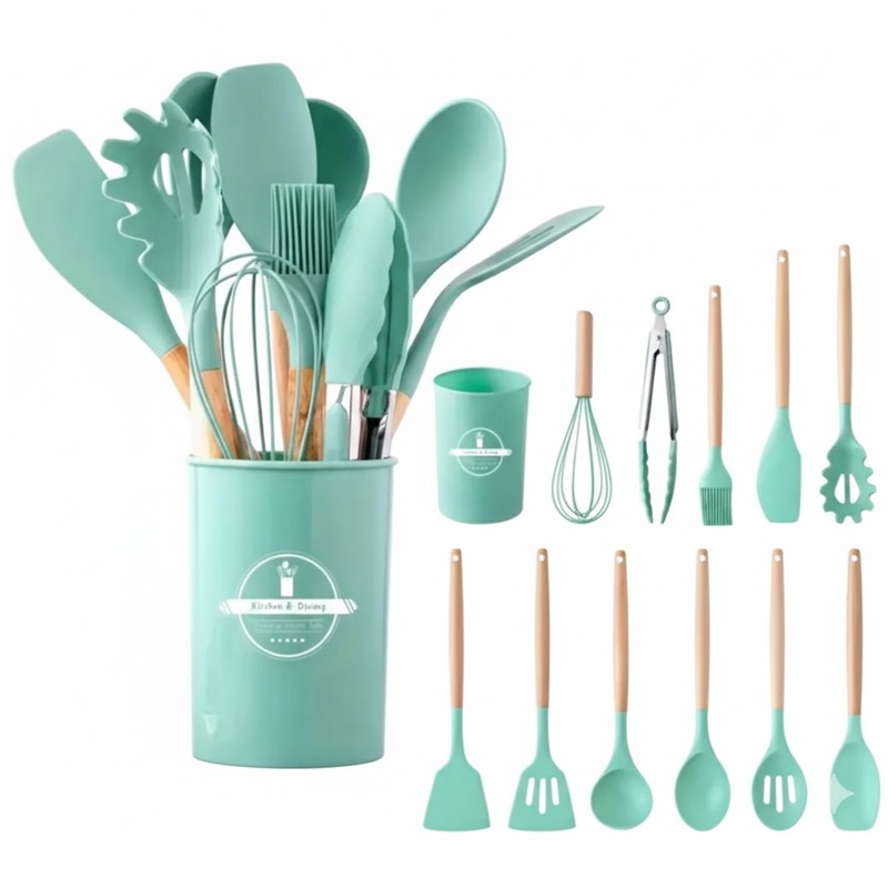 Lot De 12 Ustensiles De Cuisine En Silicone - Vert — à partir de 69,000 DT | Hawwini | Hawwini