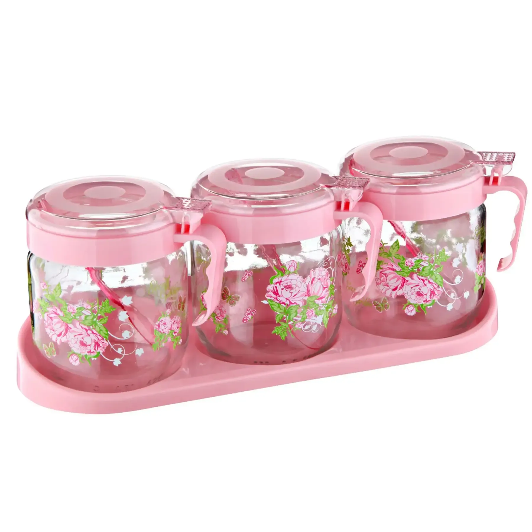 Lot de 3 boites à épices à motif rose — à partir de 21,700 DT | Hawwini | Hawwini