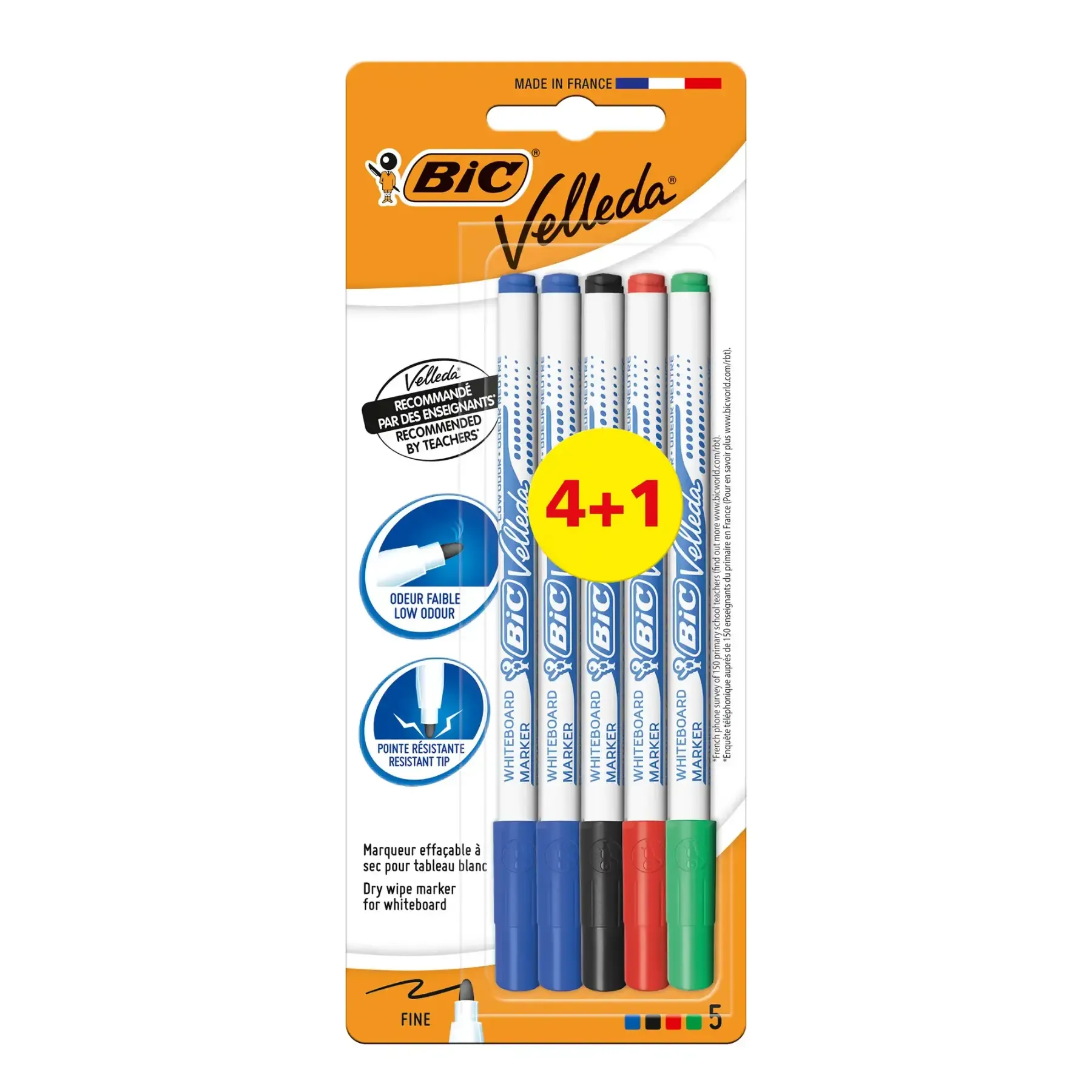 Lot de 4 marqueurs effaçables + 1 gratuit