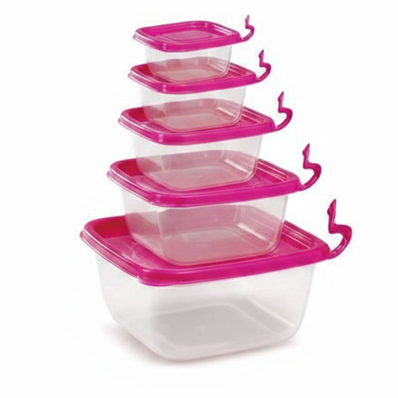 Lot de 5 boites de conservation Max Plast de different tailles de forme carrées pour réfrigérateur congélateurs placard ou pique -nique nos boites de rangement nourriture sont en plastique alimentaire BPA fre e idéales pour conserver vos aliment s frais plus longtemps de couleurs transparente - il suffit de fermer votre boite d appuyer au centre pour évacuer l air et vous fermez le petit bouton existant sur le couvercle 5 boites de different taille: 5,3L/ 3L/ 1500ml/ 700ml/ 340 ml - Couleur: Rose Livraison Gratuite à partir de 300DT d'Achat