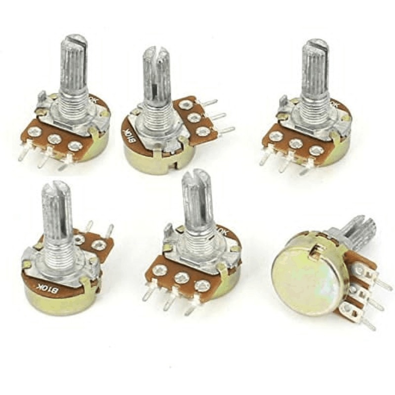 Lot de 6 Potentiomètres en carbone pour CI, Tol 20%, P 0.25w, 250v au choix (1KΩ, 5KΩ; 10KΩ; 100KΩ; 250KΩ,1MΩ) – Prix Tunisie dès 4,200 DT | Hawwini