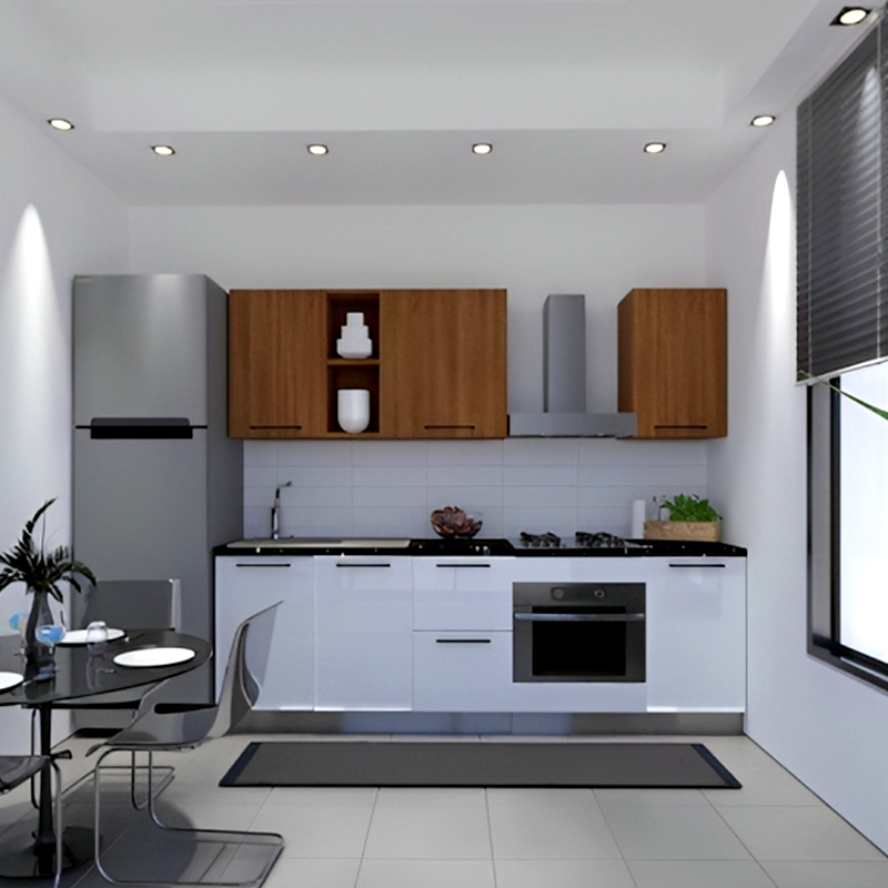 Meuble De Cuisine VEGA 8 Éléments Avec Plan De Travail - Blanc/Chéne — à partir de 2 839,000 DT | Hawwini | Hawwini