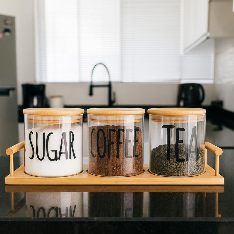 NEST – Ensemble de 3 Boîtes en Verre avec Support en Bois – Modèle Moyen — à partir de 1,190 DT | Hawwini | Hawwini