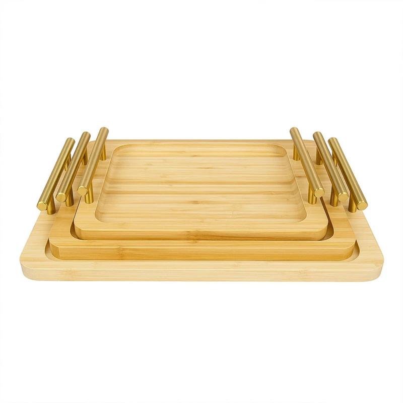 NEST – Ensemble De 3 Plateaux Bambou – Poignées Doré — à partir de 1,190 DT | Hawwini | Hawwini
