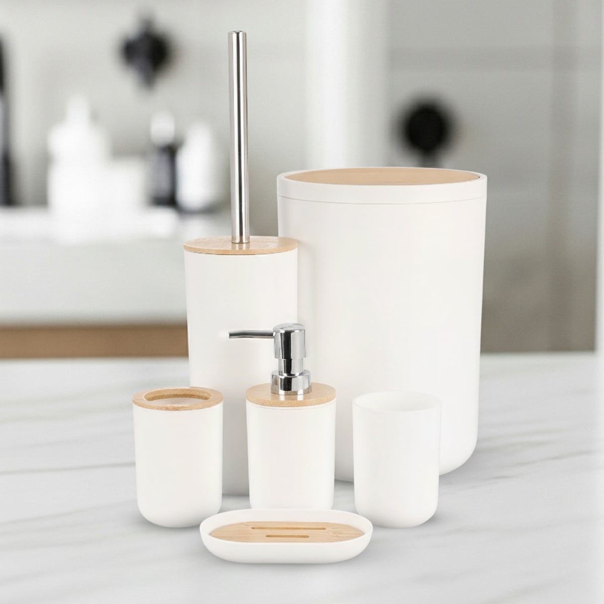 NEST – Ensemble De Salle De Bain 6 Pièces En Bamboo – Blanc — à partir de 0,790 DT | Hawwini | Hawwini