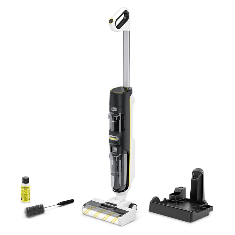 Nettoyeur De Sols KARCHER FCV 4 - Utilisation: sans fil - Batterie interchangeable Lithium-ion - Technologie Hygienic!Spin - Volume du réservoir d'eau propre: 750ml - Volume du réservoir d'eau sale: 425ml - Largeur de travail avec brosse-rouleau: 240mm - Temps de séchage du sol nettoyé: 2min - Autonomie par charge de batterie: 45min - Système à deux réservoirs - Mode d'auto-nettoyage - Système de filtration sur deux niveaux - Brosse - Dimensions: L x I x H: 1138 x 268 x 280 mm - Poids: 3.8 kg - Couleur Blanc - Garantie: 1an Retrait en Magasin ou Livraison Gratuite * * Livraison Gratuite Pour 1 seul colis ≤ 30 Kg