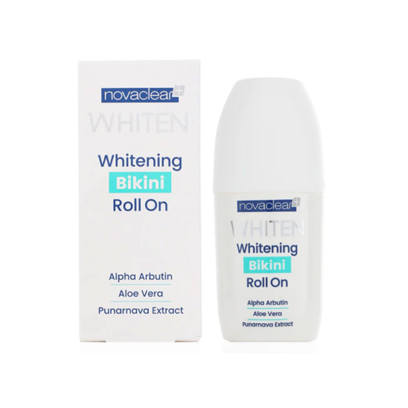 Novaclear Whitening Roll On bikini pour maillot éclaircit les taches brunes et prend soin de votre peau.
