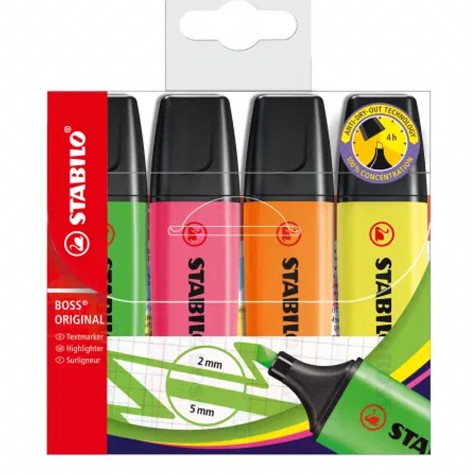 Pochette 4 marqueurs fluo STABILO boss – Prix Tunisie dès 17,150 DT | Hawwini