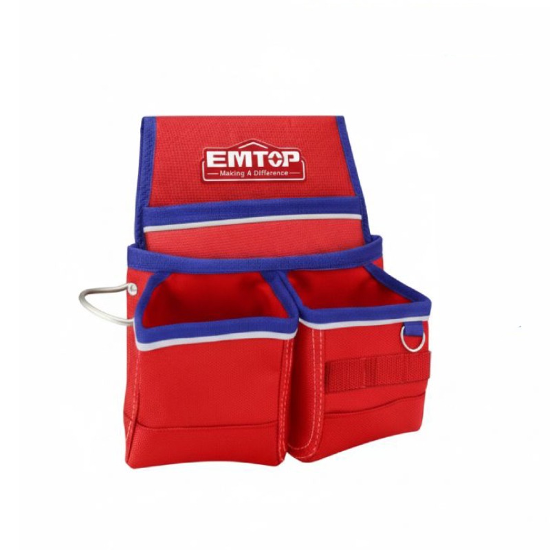 Pochette à outils EMTOP - ModÚle: ETBG481034 - Dimensions: 35 x 32 cm - Matériau: Polyester 1680D ultra-résistant - Capacité: 9 poches de rangement - Charge maximale: 10 kg - Caractéristique spéciale: Porte-marteau intégré pour un accÚs rapide - Usage: Organisation et transport d'outils essentiels à la ceinture - Conception compacte et robuste idéale pour un usage quotidien intensif - Couleur : Rouge et Bleu . Livraison Gratuite à partir de 300DT d'Achat