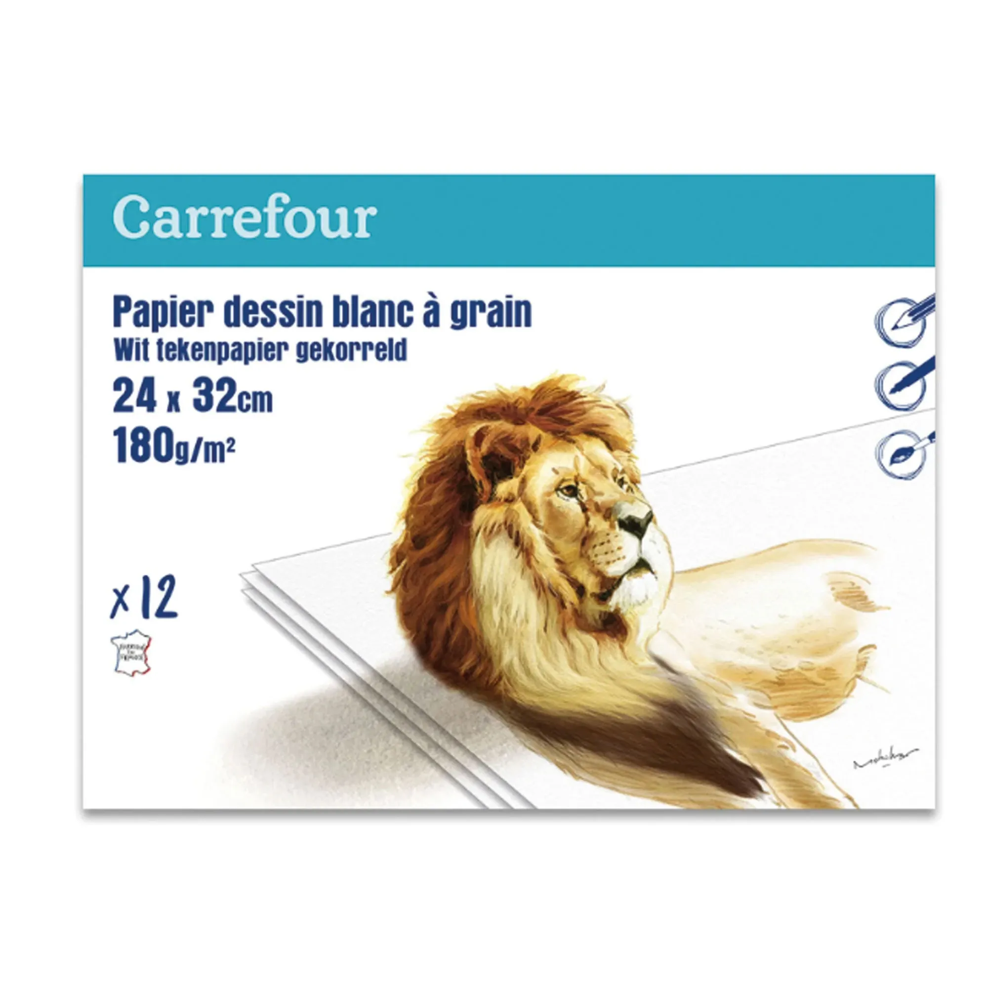 Pochette de 12 papier à dessin 180g blanc — à partir de 3,990 DT | Hawwini | Hawwini