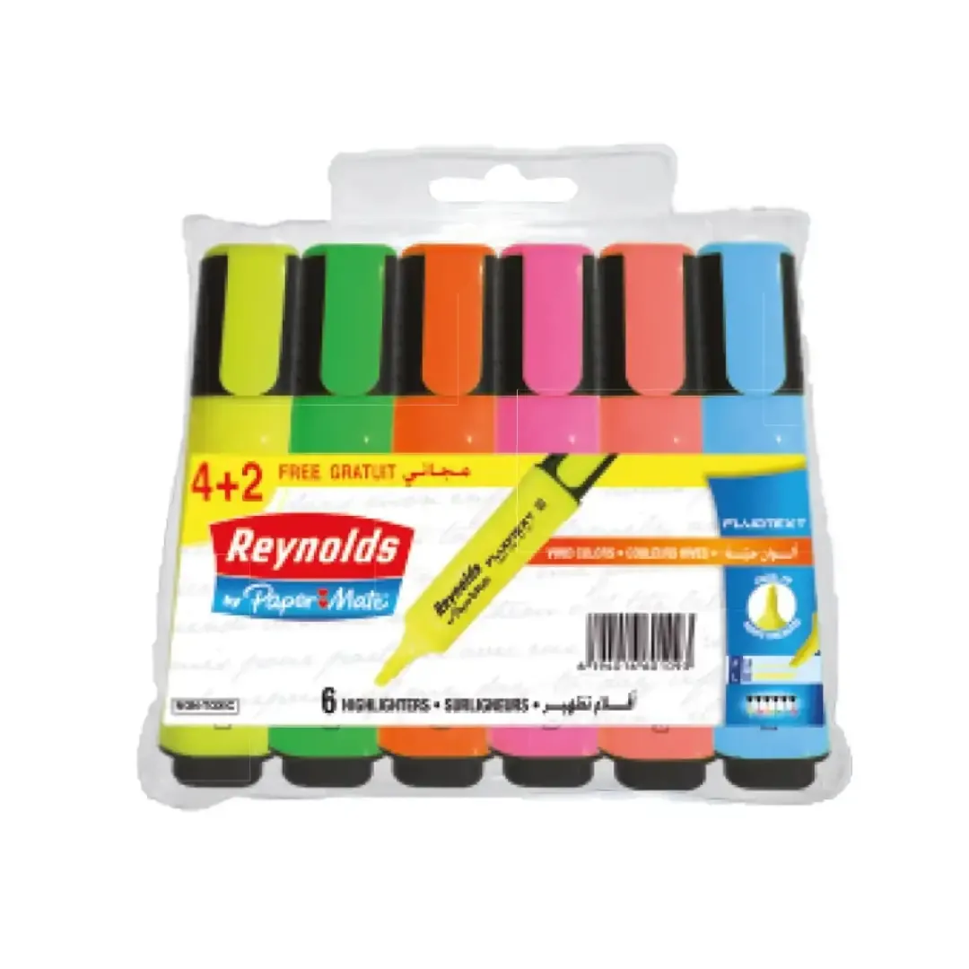 Pochette de 4 marqueurs Fluo + 2 gratuit