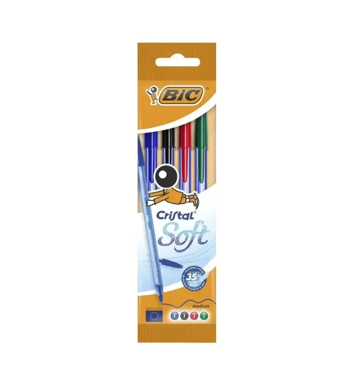 Pochette de 4 stylos à bille BIC Cristal Soft — à partir de 4,900 DT | Hawwini | Hawwini