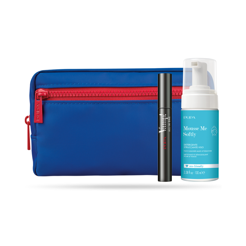 Vamp! All in One 101 – Extra Black Laissez-vous séduire par le résultat multidimensionnel de Vamp! All in One pour obtenir des cils immédiatement et étonnement volumisés, allongés et recourbés. Un mascara avec un soin fortifiant qui favorise la croissance naturelle des cils au fil des jours, tout en boostant leur épaisseur et leur résistance pour vous garantir un regard irrésistible. 90% constatent des cils plus volumineux* 90% constatent des cils plus longs* 86% constatent des cils plus étoffés* 83% constatent des cils plus résistants* *Test d’autoévaluation. Nombre de participantes ayant constaté le résultat. 30 femmes. 30 jours d’application. Produit à faible risque d’allergie Testé sous contrôle ophtalmologique Adapté aux yeux sensibles et aux porteuses de lentilles Sans parabènes Made in Italy 6M | Net Wt 0.30 oz – 9 ml Mousse Me Softly Cette formule « propre » innovante est élaborée uniquement à base d’éléments fonctionnels et de 98 % d’ingrédients d’origine naturelle. Une mousse douce qui fond sur la peau pour éliminer efficacement un maquillage léger et naturel, en la laissant propre et hydratée. Elle nettoie et démaquille sans laisser de sensation de sécheresse sur la peau. Elle est parfaite combinée avec le Wand Eraser – Démaquillant Biphasé, pour un double nettoyage et pour éliminer la finition huileuse. Biodégradable à 77%* pour réduire l’impact environnemental. *Test OECD 301 Protocole de vérification instrumentale de la persistance d’un produit dans l’environnement. Un produit est considéré comme biodégradable si plus de 60 % du carbone qu’il contient est transformé en anhydride de carbone dans les 28 jours. testé sous contrôle clinique et dermatologique sur des peaux sensibles testé pour le nickel sans substances de dérivation animale made in Italy 12M | 100 ml – 3.38 fl oz Belle grande taille – double fermeture à glissière encore plus pratique et commode grâce à la fermeture à glissière frontale