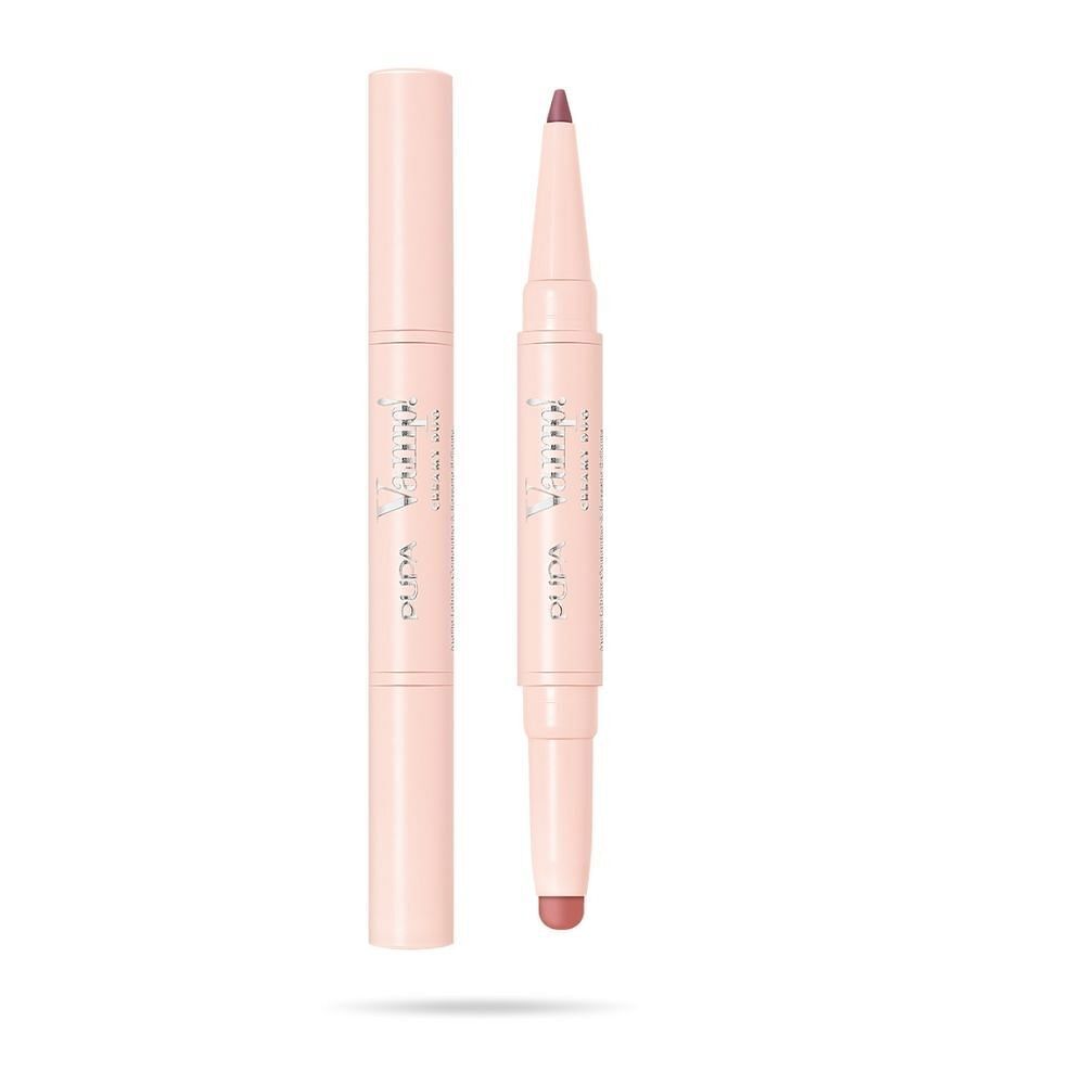 Vamp! Creamy Duo est un produit à double fonctionnalité, il contient un crayon qui définit et remodèle le contour des lèvres et un rouge à lèvres brillant et crémeux, pour les rendre visiblement pleines et volumisées. Le crayon a une texture avec une libération de couleur extrême, adhère instantanément avec précision pour un effet sans transfert. Le rouge à lèvres a une texture super crémeuse, subtile et confortable sur les lèvres. Fabriqué en Italie | Testé dermatologiquement Mode d’emploi : Crayon : Redéfinir et remodeler le contour des lèvres avec le crayon. Rouge à lèvres : Appliquez un rouge à lèvres brillant pour des lèvres visiblement plus pulpeuses et plus charnues.