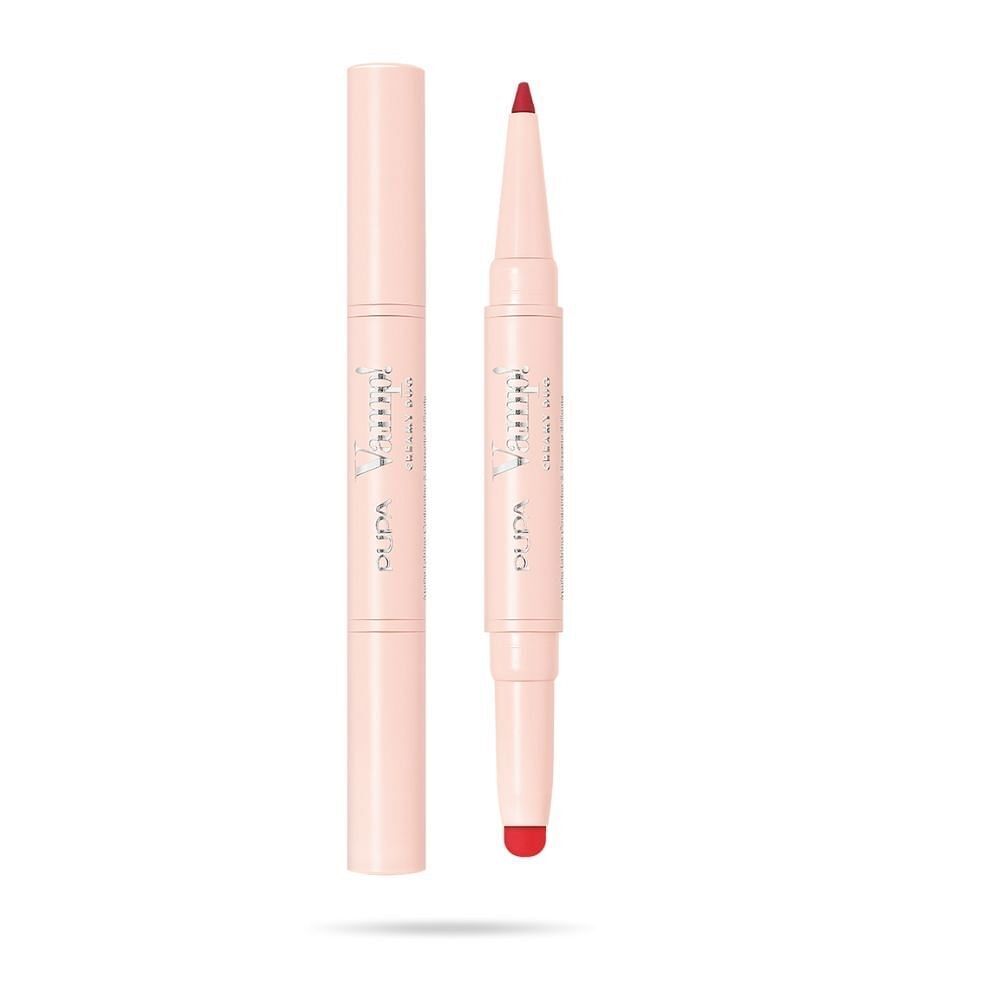 Vamp! Creamy Duo est un produit à double fonctionnalité, il contient un crayon qui définit et remodèle le contour des lèvres et un rouge à lèvres brillant et crémeux, pour les rendre visiblement pleines et volumisées. Le crayon a une texture avec une libération de couleur extrême, adhère instantanément avec précision pour un effet sans transfert. Le rouge à lèvres a une texture super crémeuse, subtile et confortable sur les lèvres. Fabriqué en Italie | Testé dermatologiquement Mode d’emploi : Crayon : Redéfinir et remodeler le contour des lèvres avec le crayon. Rouge à lèvres : Appliquez un rouge à lèvres brillant pour des lèvres visiblement plus pulpeuses et plus charnues.