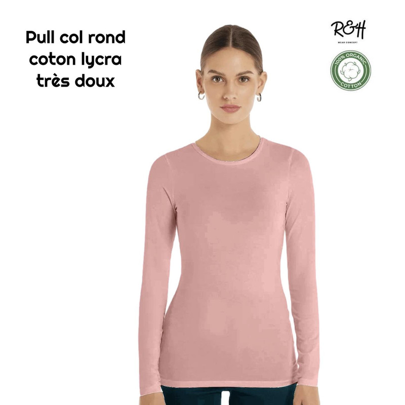 R&H – Pull coll rond – rose — à partir de 0,330 DT | Hawwini | Hawwini