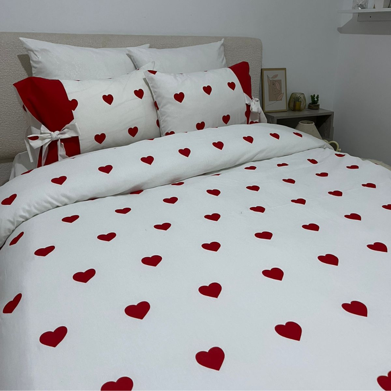 ROYAL DRAPS – Couette de lit avec cœurs rouges 240x230cm Blanc — à partir de 0,938 DT | Hawwini | Hawwini