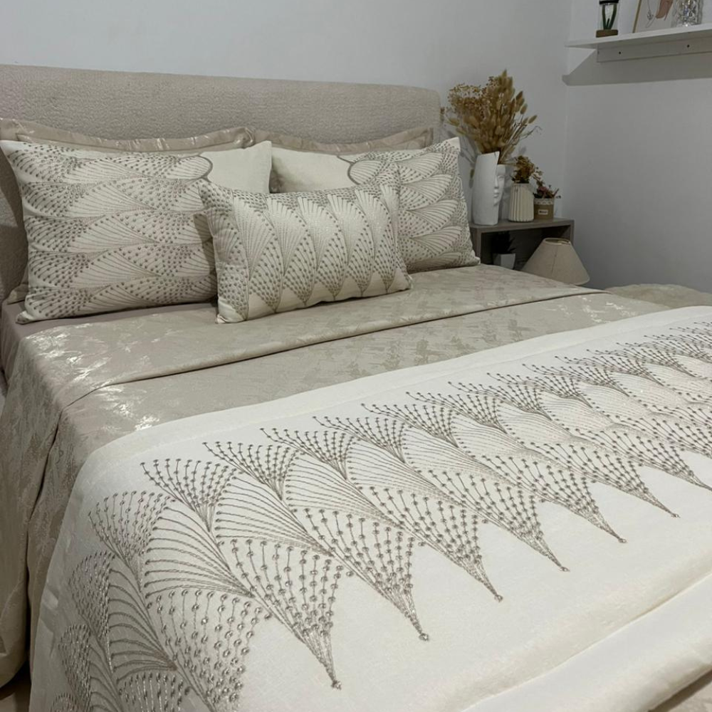 ROYAL DRAPS – Couvre lit de noce 7 pieces 280x250cm Blanc