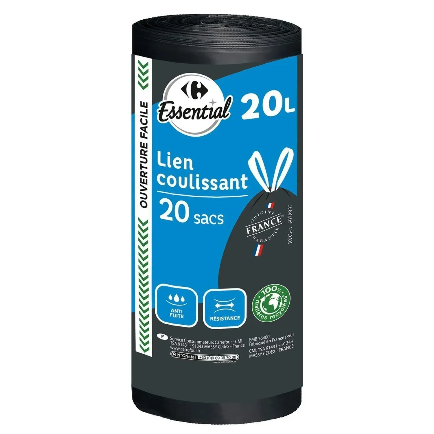 Sac poubelle Ă lien coulissant 20L