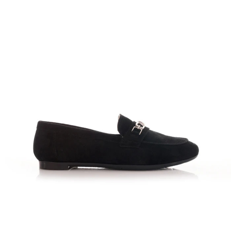 Mocassins femme en daim et cuir véritable, élégants et confortables au quotidien. Disponibles en beige avec détail doré ou noir avec détail argent, ils s’adaptent facilement à tous vos looks.