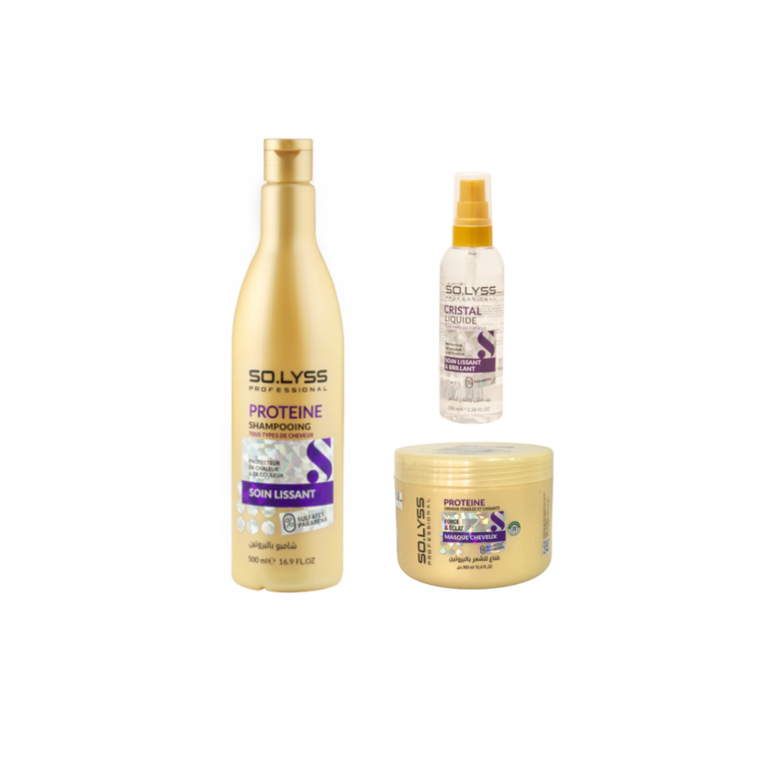 Solyss – Pack Proteine Shampoing + Masque Cheveux + Serum Lissant Et Brillant — à partir de 0,349 DT | Hawwini | Hawwini