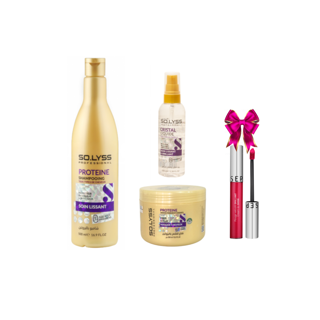 Solyss – Pack Proteine Shampoing + Masque Cheveux + Serum Lissant Et Brillant + (Gloss Sephora Offert) — à partir de 0,349 DT | Hawwini | Hawwini