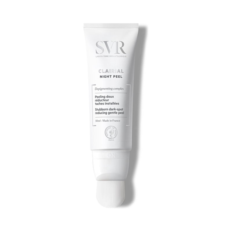 SVR Clairial Night Peel est un soin de nuit innovant qui réduit visiblement les taches pigmentaires tout en hydratant intensément la peau. Sa formule douce agit pendant le sommeil pour un teint plus lumineux, uniforme et une peau visiblement plus lisse dès le réveil, même sur les peaux sensibles.