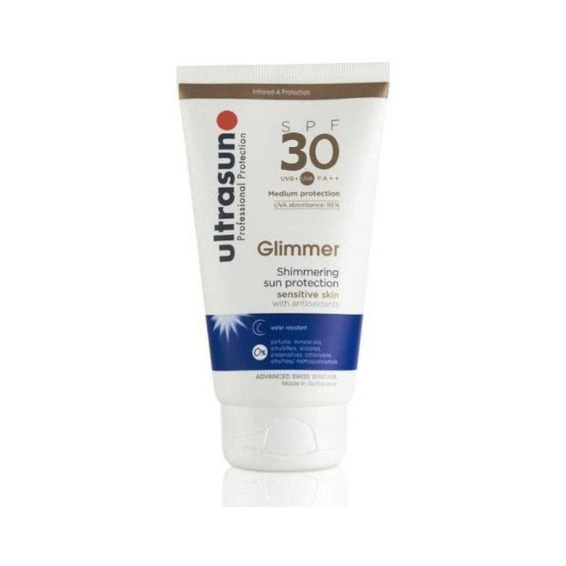Pour une protection douce et hydratante et durable du soleil après une seule application, ne cherchez pas plus loin que la formule sensible Ultrasun Glimmer SPF30 résistante à l’eau.
