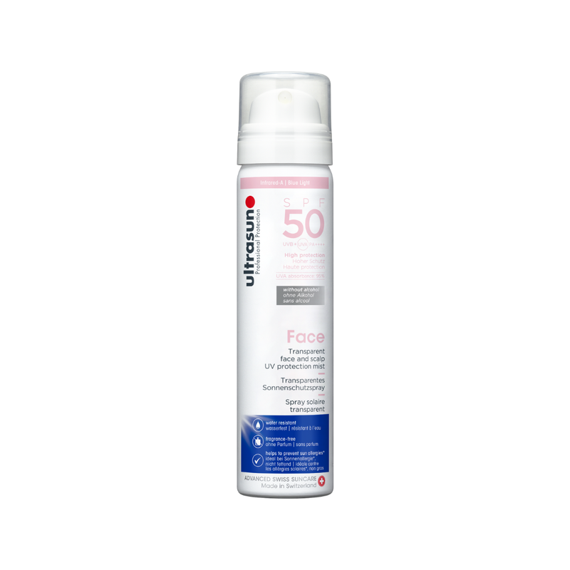 Le spray de protection solaire Ultrasun Face & Scalp transparent et non gras est idéal pour le visage et le cuir chevelu. La brume de protection solaire contient InfraGuard®, un puissant complexe antioxydant à base de pousses de tournesol bio et d’arbre Tara, qui inhibe le photovieillissement et le vieillissement cutané et protège les cellules cutanées de la lumière bleue.